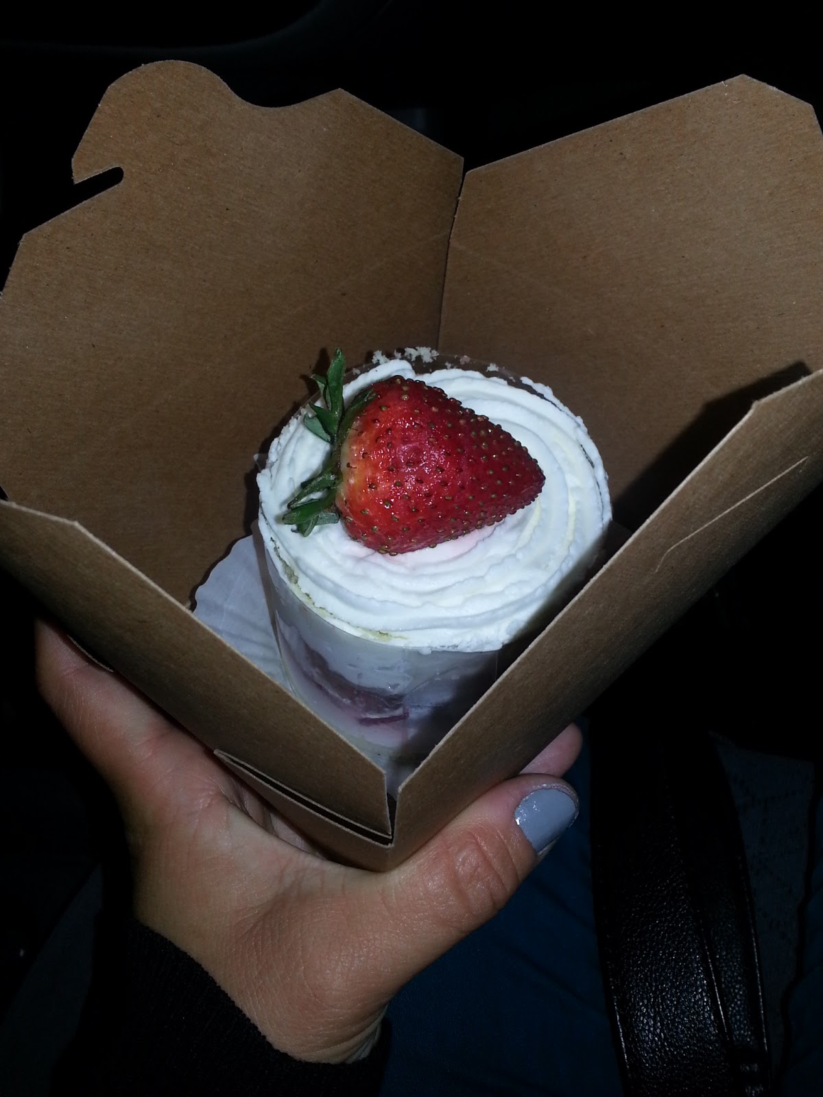 the night before i had gone to Syrups in Downtown LA and i got her a strawberry shortcake from there. i wonder if it was good.